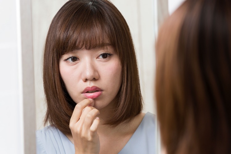 唇を噛んだり、こすったりするなどの刺激も、ヘルペスの原因となります。