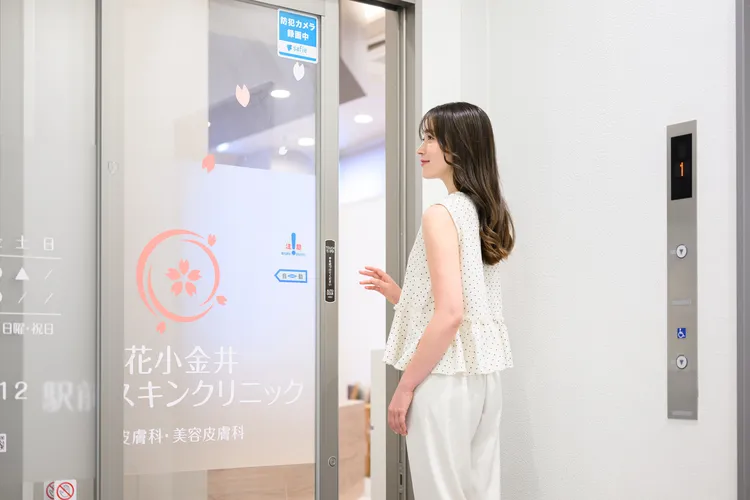 当院は、西武新宿線「花小金井駅」北口から徒歩1分のアクセス抜群な立地にあり、皮膚科・小児皮膚科・美容皮膚科の診療を行っております。